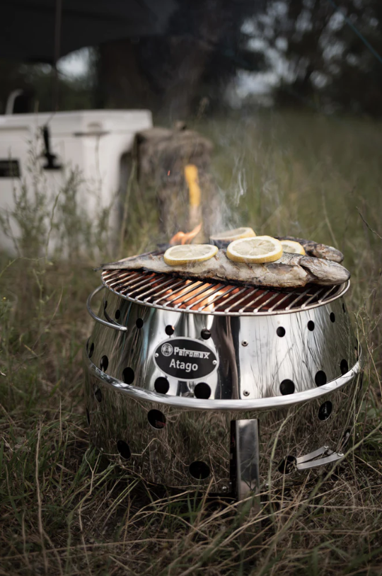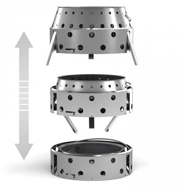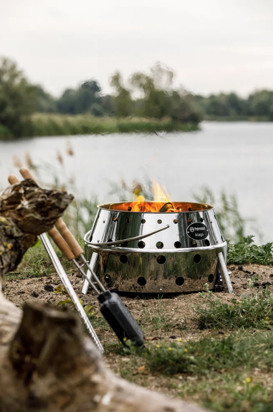 The Atago consists of robust and heat-resistant stainless steel designed in Germany. Therefore, it is a particularly durable cooking and fireplace. By one pull of the handle, the thought-out design with a unique folding mechanism transforms it from 14cm transport height into 28cm operating height.